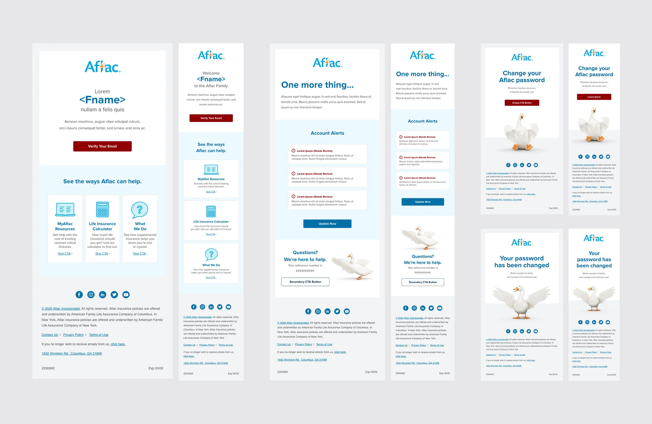 Aflac is an American insurance company that is largest provider of supplemental insurance in the United States. I created an email design system (formatted for desktop and mobile) with the development of various modules that allowed for interchangeability and the maintaining of brand consistency among the templates which ranged from promotional to transactional. In addition to the light mode templates, I included modules that would be adaptable in dark mode which has become a popular feature that is now enabled across multiple devices.